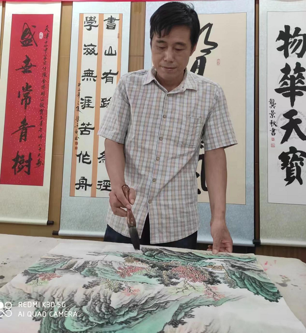 代表作品巜泰岱朝辉》巜秋到太行》《盛世中华》 《鸿运当头》等作品。其作品被韩国,新加坡,日本,加拿大等国友人收藏。近期其多幅作品在雅昌拍卖中被外国友人拍走,显示了创作功力的深厚,作品融入世界艺术氛围的大家庭之中。
