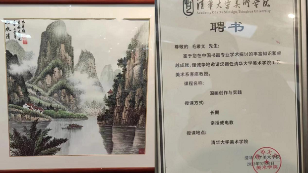 毛希文,字云清,号天一居士(翰轩),山东滨州阳信人。早期启蒙于陈维信老师,后又谦心学习,进修于山东艺术学院中国山水画研究生班,修学于中国美术学院国画系,毕业于国家画院。张大千第三代传人。师从著名山水画家何海霞,张宝珠,张志民先生。又受许麟庐,董寿平,曹文驰等名师指点。现为京津派画家,中国美术人才网特聘画家,山东美协培训班指导教师,国家一级美术师,北京时代金城书画院院士,山东淄博美协会员,国礼书画家,中国教育电视台CETV《名家讲堂》栏目特聘艺术顾问,清华大学美术学院客座教授,国家一级美术师。