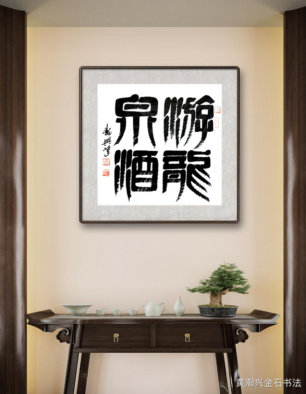 黄瀚兴对书法篆刻均有爱好,书法以真、行草、隶书为擅长,是一位不可多得的书写五种字的体实力派书法爱好追求者。其书写风格特点:全羊毫长锋用笔,字体突出了继承与创新、柔中有刚、变化多姿、形态显神,以变求神的个性。楷书多取法颜真卿书圣,传统功力浑厚,结体端庄完美,师古而不泥;行草以孙过庭等历代大师为范,行草结合,刚柔兼容,飘逸清秀,气韵贯通,笔墨酣畅,自成风貌;篆书、隶书在研习汉隶的基础上,独创线条“飞白”笔墨,苍劲古拙,典雅醇厚,自成一家,可谓一绝,耐人寻味。