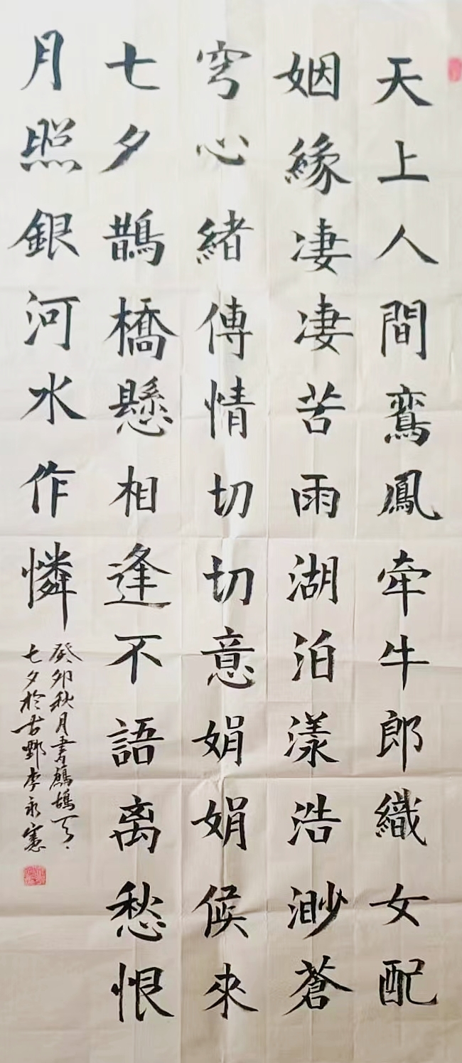 李永宪,现年68岁,中师文化,退休教师,国家一级书法师。 本人自幼喜爱书法。开始研习颜、柳、欧阳询等楷书,尤其酷爱欧楷。后又研习二王书法。刻苦阅读书法理论,仔细观察字帖的一笔一画,精心研究笔法,用心体会书法的字外工夫。后来又拜书法大家高贤益为师学习书法,通过临帖,加之老师的实践理论指导,从而摸索出一些书法技窍,自己的书法水平也有了新的提高。