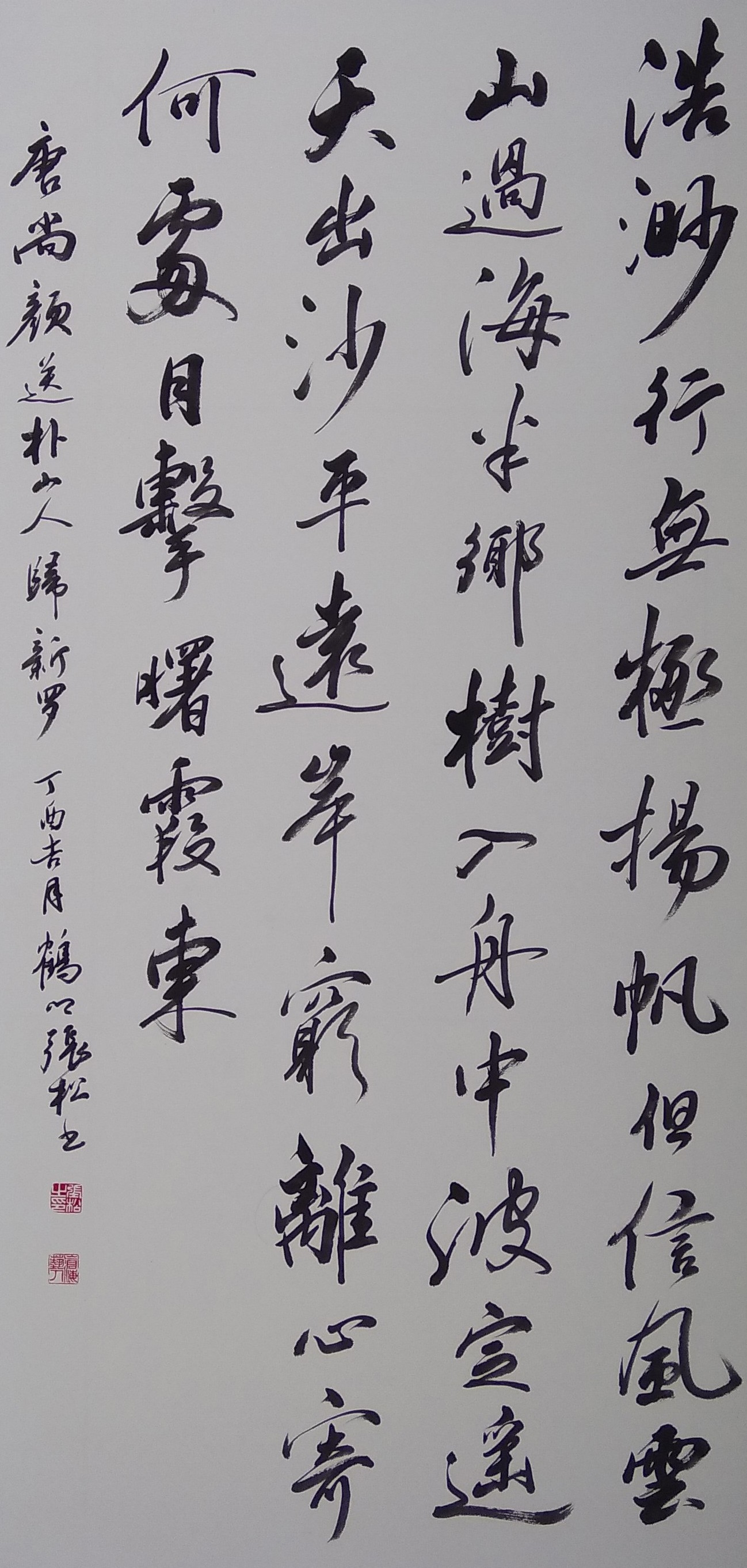 张松多年来潜心攻艺、临池挥毫、春秋无度,传承拓新书法艺术,甘愿奉献付出,践行勇于担当,坚定文化自信,积极讴歌新时代,创作出大量优秀的作品,深受社会各界人士的喜爱和好评,为中国传统文化的传承和弘扬,以及在促进中外文化交流作出杰出的贡献。