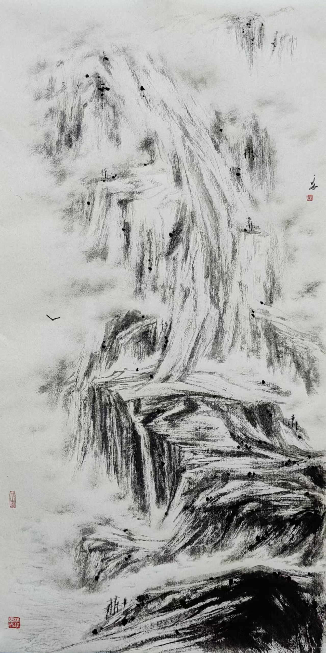 李秋明擅人物、花鸟、山水,作品追求大道至简、古拙质朴。著名评论家田达治老师说,“他的这种焦墨意象山水的创作,为焦墨这种传统的笔墨表现形式带来了崭新的当代精神”;著名书画评论家史峰先生评价说,“在意象山水的研究中,他通过对传统山水的解构与重构,创造出一种全新的艺术语言,他的探索为当代艺术的发展提供了新的可能性,也为传统艺术的现代化转型作出了重要贡献。”“他的艺术成就不仅是个人的荣耀,更是中国当代艺术发展的重要标志。”