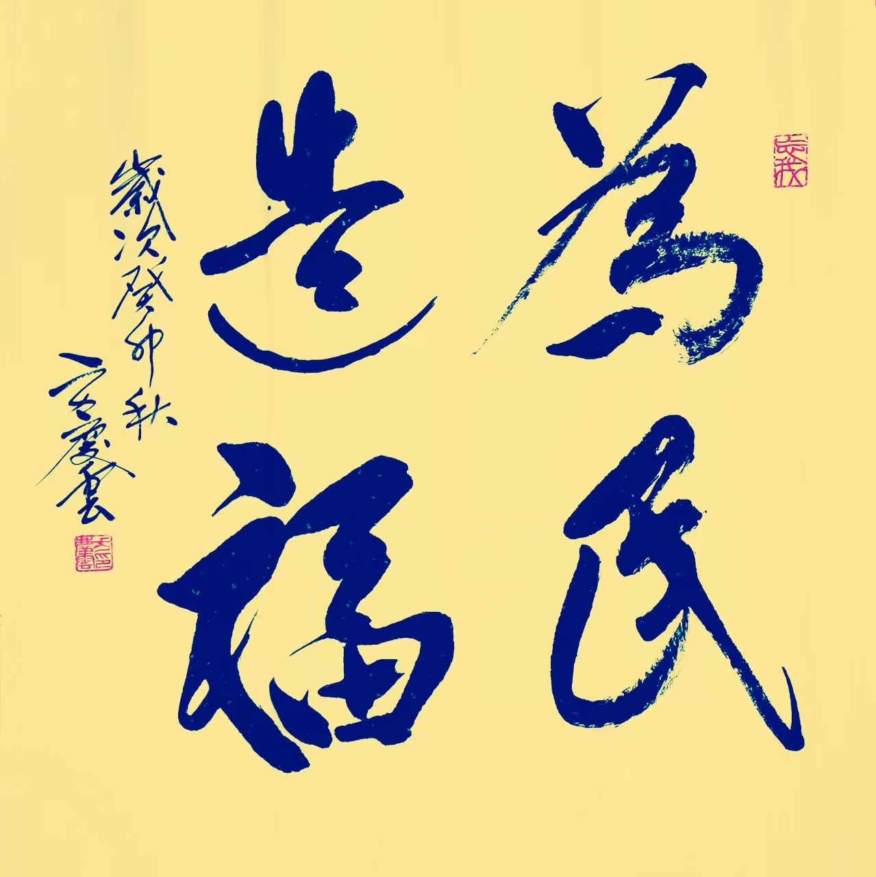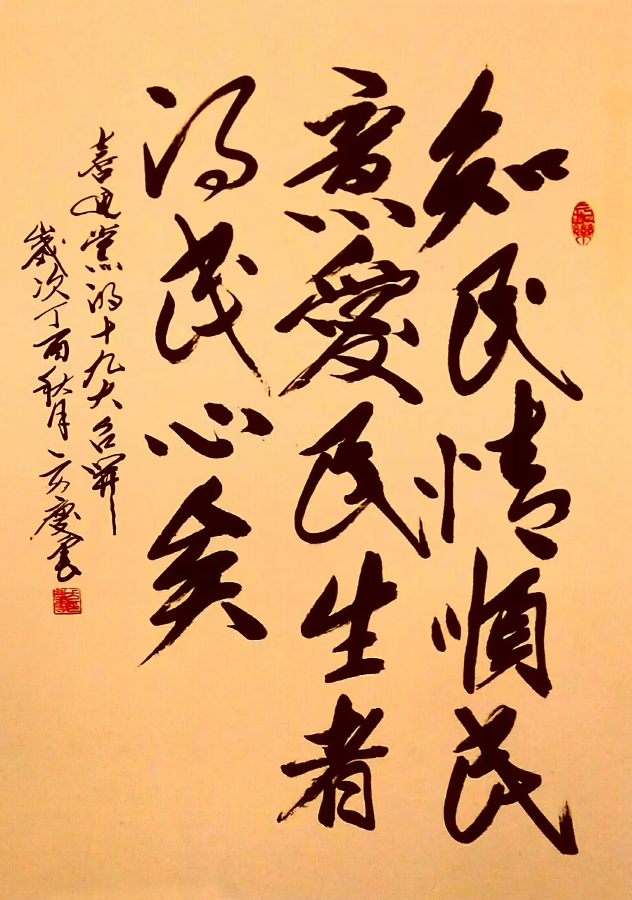 方庆云先生在研究书法的过程中,坚持创造性转化,创新性发展,守正创新的精神,大胆创新,从书法艺术向书法美术转化。坚持面向社会,面向基层,面向群众,面向生产,面向生活,深受各界的欢迎和广泛的应用。